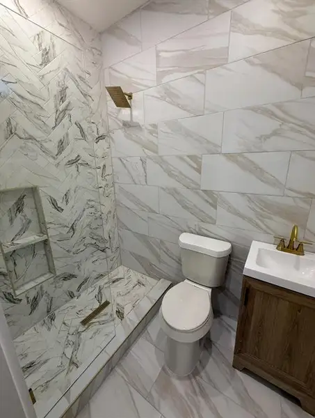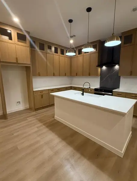 Stunning new construction with modern design and upscale finishes throughout. This home features soaring ceilings, wide plank flooring, and an open concept layout perfect for entertaining and everyday living. The chef’s kitchen offers custom cabinetry, oversized island, quartz countertops and designer lighting. A striking staircase with a built in under stair bar and accent wall creates a true statement upon entry, highlighted by a dramatic 19 foot window that fills the space with natural light. Spacious bedrooms with ample natural light and generous closets. Spa inspired bathrooms include a freestanding soaking tub, walk in shower with luxury tile, and designer fixtures. Large windows and sliding doors bring in tons of natural light and connect the indoor space to the outdoors. Covered balcony and front porch provide great outdoor living space. Energy efficient windows, modern exterior elevation and quality craftsmanship throughout make this home a must see