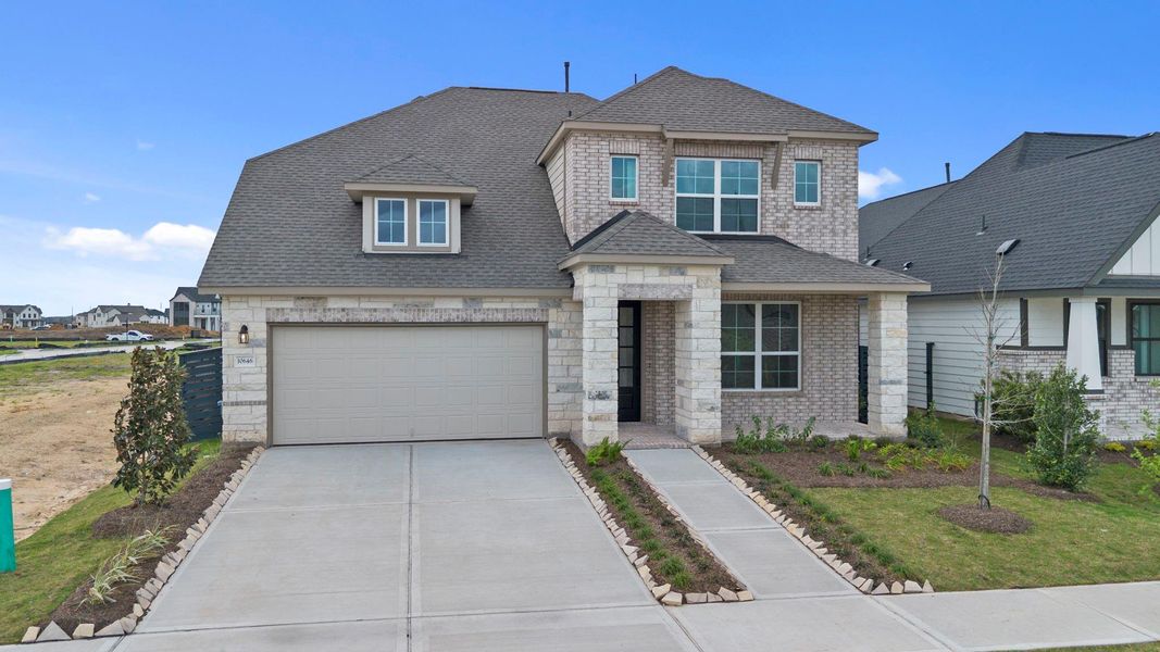 Come see this beautiful, spacious floor plan featuring both a game room and a media room perfect for entertaining, relaxing, and making lasting memories! The Katy home plan embodies spaciousness and sophistication across two levels. The gourmet kitchen serves as a culinary centerpiece, complete with a walk-in pantry and a center island that provides abundant storage and prep space. Entering the grand family room, one is greeted by soaring ceilings that extend to the second floor, creating an airy atmosphere perfect for gatherings.