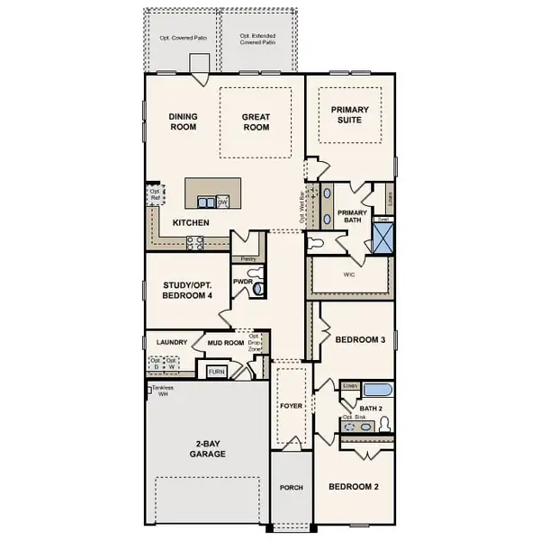 Step into modern design with the Carlsbad floor plan! At the heart of the home is a spacious open-concept great room, which flows into a dining area and an impressive kitchen with a center island and a walk-in pantry. The adjacent primary suite boasts a walk-in closet and a primary bath with dual vanities and a walk-in shower. You’ll also find two secondary bedrooms and a private study in this attractive layout.