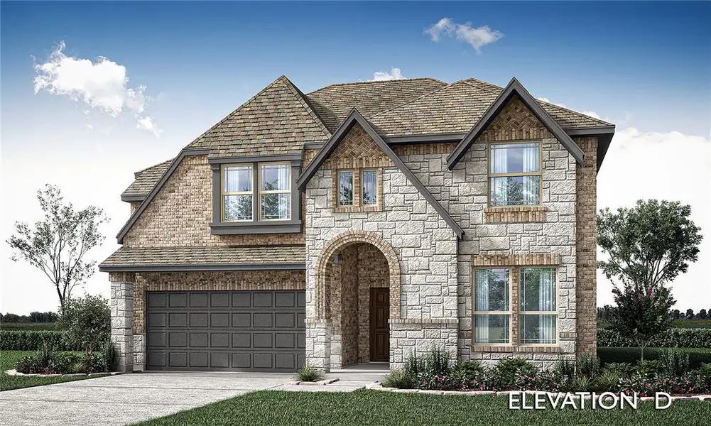 NEW! NEVER LIVED IN. Discover the Violet IV by Bloomfield Homes in the ArrowBrooke community, offering 4 bedrooms, 3.5 baths, and a 2-car garage in a two-story layout. A striking brick and stone exterior is complemented by a contemporary finish package featuring sleek silver and nickel fixtures, hardware, and lighting that carry a clean, modern look throughout the home. Just off the entry, a private study provides flexibility, while the open-concept main living area creates a natural flow between the family room, dining space, and kitchen. A mud room area in the utility room keeps daily life organized and out of sight. The primary suite is conveniently located downstairs, offering separation from the secondary bedrooms. The bath features a relaxing soaking tub, separate shower, a spacious vanity with dual sinks, and a huge walk-in closet. The Deluxe Kitchen is designed to stand out. Shaker-style cabinetry pairs beautifully with quartz countertops, while upgraded details such as a 5-burner cooktop, built-in stainless steel appliances, and a trash pull-out make it as functional as it is stylish. Upstairs, the home truly opens up with an open railing along the staircase and game room. The media room is enclosed with double doors, creating a refined space ready for movie nights or entertaining. 3 secondary bedrooms and 2 full baths are thoughtfully positioned on the second level. Additional upgrades include 2-inch faux wood blinds throughout, full rain gutters, and an extended patio that expands your outdoor living space, perfect for hosting gatherings or enjoying quiet evenings at home. Life in ArrowBrooke means access to an amenity center, clubhouse, resort-style pool, sports fields, playgrounds, parks, hike and bike trails, and four community lakes with scenic ponds woven throughout the neighborhood. Visit Bloomfield Homes at ArrowBrooke to learn more today!