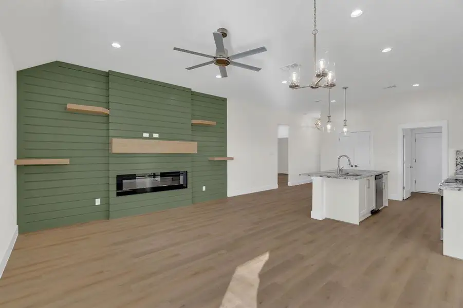 Beautiful new construction one story home with all brick and stone. This home has an open floorplan that features 3 bedrooms, 2 baths, living room, dining area, bonus pocket office and a 2 car garage. The kitchen is equipped with quartz countertops, customs soft closure cabinets and drawers, pot filler, island, stainless steel appliances including electric stove, dishwasher and microwave. There is also a disposal, water line to the frig, deep soaking sink with a spray faucet and a separate pantry with plenty of shelving. The master bedroom is split and has an ensuite with double sinks, separate shower, huge soaking tub and a big walk in closet. Laundry room is full size with plenty of cabinets for storage and an adjoining mud room. Every room in this home has ceiling fans and vinyl plank flooring throughout. Outside features include hail resistant shingles, rain gutters, board on board wood fence and a nice size patio for entertaining. The 2-car garage has an automatic opener. Home also features foam insulation, LED lighting, low-E dual glaze energy efficient windows and low flow commodes.