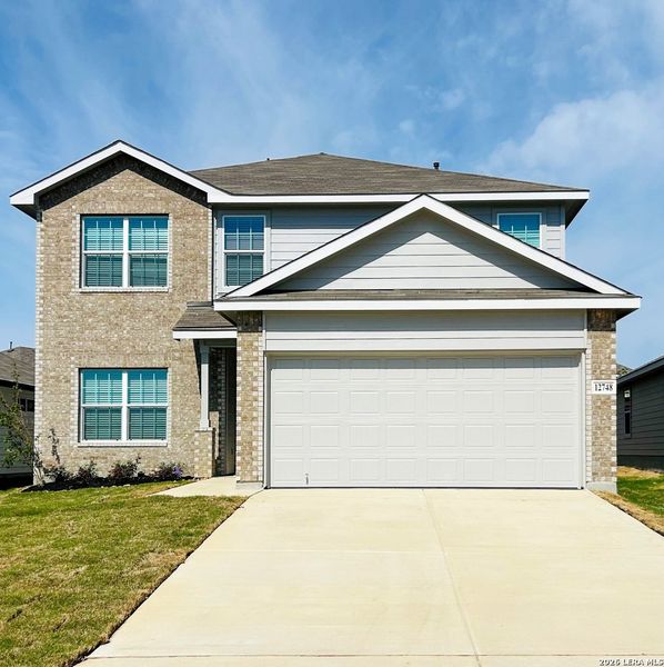 Step into The Callum, a two-story home featured in our Avenida community in Converse, TX. This floor plan is one of our larger floor plans. This layout features 5 bedrooms, 3.5 bathrooms and a 2-car garage. The Callum also offers 3 classic front exteriors and 2,660 square feet of comfortable living. The Callum features classic designs and modern features that blend seamlessly to create the perfect space for you and your loved ones. The covered front patio (per plan) opens into a beautiful foyer and formal dining room with abundant natural light from multiple windows. The foyer leads into an open-concept kitchen with stainless steel appliances, quartz countertops, white subway tile backsplash, and a kitchen island that faces the spacious living room, perfect for entertaining! The private main bedroom suite is also located off the living room. Your bedroom area is spacious and you'll relax in style with large windows and quality carpet flooring. The ensuite bathroom features ceramic tile flooring, desirable double vanity sinks, separate garden tub and walk-in shower, a private water closet, and large walk-in closet with plenty of shelving. The second story of The Callum has so much to offer! A large loft area is waiting for you at the top of the stairs. Whether you use this space as a game room, office, or a media room, there is sure to be comfort. Your remaining 4 bedrooms are all located off the loft and include large windows, quality carpet flooring and spacious closets. You will also find 2 full bathrooms upstairs, complete with bath tub and shower combos and single vanity sinks. This floor plan even has a linen closet! Additional features include luxury vinyl plank flooring in the entry, family room, kitchen, and dining area, ceramic tile in the bathrooms and utility room, and pre-plumb for water softener loop. You'll enjoy added security in your new home with our Home is Connected features. Using one central hub that talks to all the devices in your home, you can control the lights, thermostat and locks, all from your cellular device.