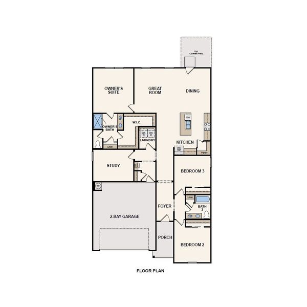 The Travis floor plan features a front porch entry that leads to the foyer. Just off of the foyer are two spacious secondary bedrooms and a bathroom with a linen closet. Towards the back of the home is the large island kitchen with corner pantry, all open to the dining area and living room - perfect for entertaining. The primary bedroom is roomy with a large shower and a huge walk-in closet. This home also features a study that's great for working from home or at-home learning. Fourth bedroom in lieu of study, covered patio and separate garden tub in the primary bathroom are available structural options.