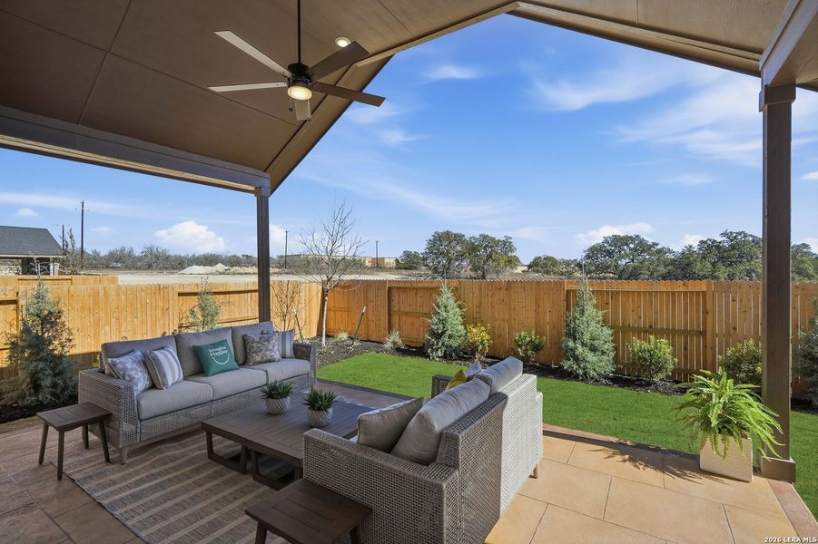 Introducing the Lauren, an elegant single-story home in Stillwater Ranch designed for modern living. This thoughtfully crafted floorplan offers three bedrooms, three baths, a versatile flex room, and a two-car garage with extra storage. The open-concept layout seamlessly connects the kitchen, dining, and family spaces, perfect for entertaining. A flexible retreat or optional study adds versatility, while the covered patio provides a beautiful space to relax and enjoy outdoor living year-round. Photos are representative - not of actual home Projected to be completed May 2026**