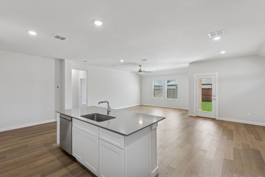 Meet the Harrison, a three bedroom, two bathroom home blending cozy living with modern touches. A spacious primary bedroom with a walk-in closet and an en-suite bath is complemented by two secondary bedrooms, perfect for guests. The large family room opens to a contemporary kitchen, ideal for both relaxed weekends and casual entertaining.