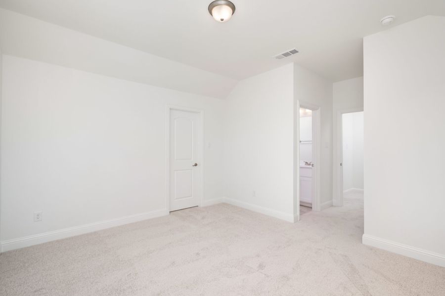 The Walton presents a spacious two-story, four-bedroom open floor plan – perfect for hosting family and friends. The welcoming foyer has two entrances – the front door and the garage – and leads to a spacious family room, passing a powder room, a laundry room, and a mudroom along the way. The family room flows into the elegant dining room and well-designed kitchen while also offering direct access to a serene, covered patio. The kitchen provides bar space, plenty of counter and storage space, and a walk-in pantry. Behind the kitchen lies the master suite with a beautiful bathroom featuring a double vanity sink, a spa-like bathtub, a sparkling glass shower, and a walk-in closet. The second floor houses an open loft area overlooking the family room and three more bedrooms, each with its own walk-in closet and access to a full shared bathroom showcasing double vanity sinks, a linen closet, and a combination shower and bathtub.