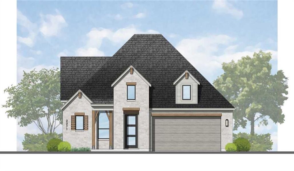 New Brent floorplan from Highland Homes in master planned Wildflower Ranch. Come float down the lazy river or sunbathe on a tanning deck in a resort style pool. Walk the miles of trails or take your best friend to the dog park. Pickleball coming soon as well as a splash pad. Community also features multiple parks and playgrounds, a greenbelt with trees and creek, and an on-site convenience store as well as a new, onsite Northwest ISD elementary school. The Brent plan features 16'5 vaulted kitchen and family room ceilings, 10' fireplace, pocket office, gourmet kitchen with built in appliances and expansive all wood island. Sunny window seat in primary bedroom and primary bath with freestanding tub. Home expected to complete in July. Purchase early and customize this beauty; make it your own.