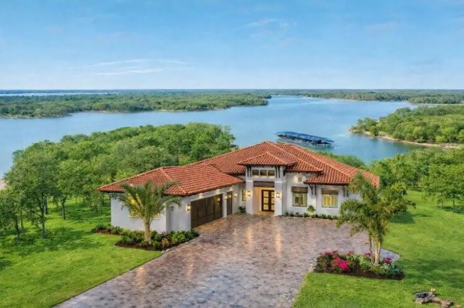 This single-story custom home reflects Coral Custom Homes’ reputation for pairing exceptional homesites with enduring construction and refined finishes. The 3,380-square-foot plan includes four ensuite bedrooms, light-filled living spaces, and a kitchen designed for effortless entertaining. Engineered hardwood flooring, custom cabinetry, and premium materials shape the interior, while a three-car garage adds everyday functionality. The owner’s suite overlooks the lake, and covered outdoor living extends the home’s comfort into a private waterfront retreat.