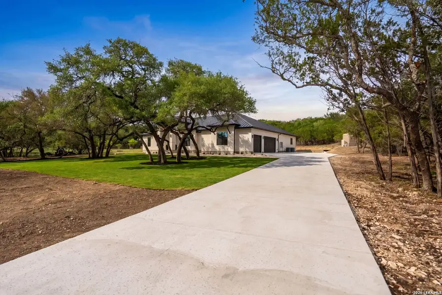New by Pillar Homes - Experience Hill Country elegance in this new stunning modern ranch style property located in the established community of The Crossing in Boerne, TX. Sitting on almost 2 acres, this is a 4 bed, 3.5 bath, + office home that blends luxury craftsmanship with everyday comfort. Step through the oversized wrought iron front door into a bright, open living space featuring high ceilings, hardwood floors, venetian plaster fireplace, thoughtfully designed with custom details throughout. The gourmet kitchen includes quartz countertops, custom hood, huge eat-in island, and gas cooking - and the extended butlers pantry provides an additional prep and cook space - great for both entertaining and family gatherings. Seamlessly transition outdoors through the oversized patio slider to a private outdoor space equipped with an outdoor kitchen, perfect for enjoying the hill country's beautiful evenings. This property truly captures the charm of country living with modern luxury - don't miss your chance to call this retreat your own. Located right outside 46, easy commute to Boerne and Bulverde, 1-2-10 builder warranty included.