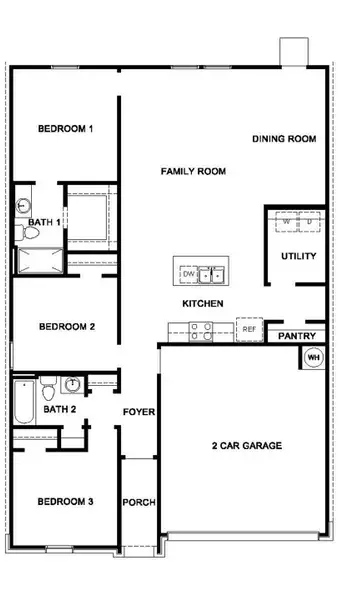 The Archer floorplan at Eastern Wells in Jarrell, Texas is a 3-bedroom, 2-bathroom single-story home covering approximately 1,328 sq. ft. The 2-car garage ensures plenty of space for vehicles and storage.