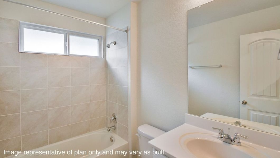 Spacious secondary bedrooms with large closets and quality carpet flooring, a second full bathroom with plenty of natural light, and a utility room are conveniently located off the living room.