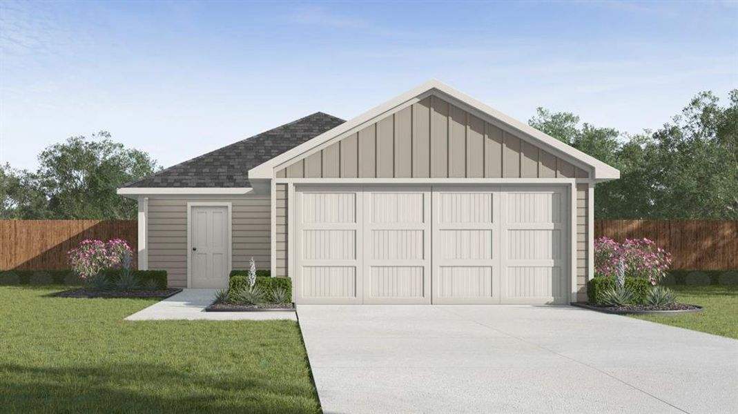 New! Three bedroom, two bath. Experience the perfect fusion of comfort and functionality with this thoughtfully designed Express Series home floorplan. The custom, architecturally designed exterior, adorned with divided light windows and a front-facing garage with decorative hardware, presents a welcoming facade. A covered front porch leads to a raised panel fiberglass insulated door, offering a warm invitation inside. Upon entry, a spacious foyer seamlessly transitions into the home's inviting living spaces. The kitchen, a hub of activity, features 30” cabinets with hidden hinges, granite or quartz countertops, and stainless-steel appliances, ensuring both style and practicality. A built-in sink, dishwasher, and ample pantry space cater to everyday needs. The primary bedroom, a serene sanctuary, boasts an adjoining bathroom designed for effortless mornings. An elongated vanity with a sink and non-framed mirror, along with a walk-in shower and closet, provides ample space and comfort. Laminate wood plank flooring in the living areas and soft carpet in the bedrooms create a cozy and comfortable atmosphere. This Express Series home is further enhanced by a user-friendly smart home system and an innovative tech package, offering modern convenience and seamless connectivity.