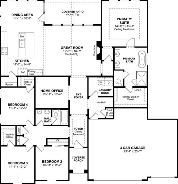 Experience Grand Oaks in Mont Belvieu, Texas, featuring stunning homes with interiors from our exclusive Looks collection. Discover this exceptional one-story Barcelona home in our stylish Farmhouse Look, featuring 4 beds, 2 baths, and 3-car garage, on a 0.239 acre lot! A welcoming foyer leads to a private home office. The great room, with an impressive vaulted ceiling, painted beams, and a cozy fireplace, creates a grand feel. The island kitchen shines with Indigo Blue cabinets and sleek quartz countertops. The primary suite is a true retreat with a decorative ceiling treatment and a luxurious bath with a freestanding tub, dual sinks, and large walk-in shower. The home also includes an expansive covered patio that spans the rear. Conveniently located near I-10, HWY 99, and HWY 146. Zoned to Barbers Hill ISD. Save thousands of dollars every year with No MUD Tax! Offered by: K. Hovnanian of Houston II, L.L.C.