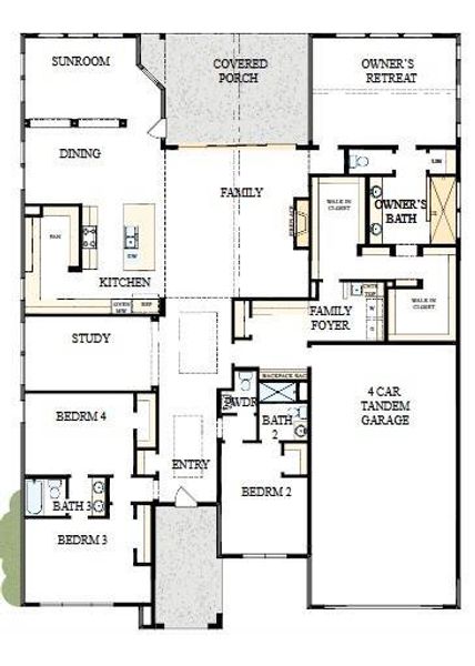Woodlands Hills! This beautiful single-story home features 4 spacious bedrooms, 3 full bathrooms, and a convenient half bath. Enjoy the privacy of an en-suite bedroom and a Jack and Jill bathroom for added convenience. The home also boasts a private office and a charming sunroom. In the family room, 12' sliding glass doors open to an extended covered patio, where you can enjoy seamless indoor-outdoor living. The family room features a striking cathedral ceiling that extends to the covered patio, while the owner's bedroom showcases its own vaulted ceiling, adding to the home's elegance. With a 4-car garage and the added benefit of a conditioned attic, this home offers both luxury and energy efficiency.