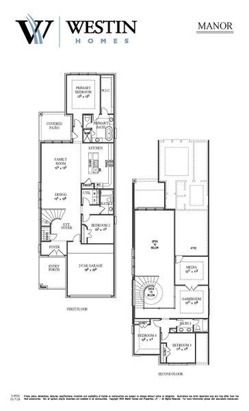 This elegant two-story home features four bedrooms, including two conveniently located on the first floor, and three well-appointed baths. The attached two-car garage offers both convenience and security. The inviting living room and informal dining area are perfect for everyday gatherings. The spacious island kitchen is a chef's dream, ideal for preparing meals and entertaining guests. The primary suite, situated on the ground floor, includes a generous walk-in closet, providing a private retreat. Upstairs, you'll find a versatile game room and a media room, perfect for family fun and entertainment. The covered patio extends your living space outdoors, making it perfect for relaxing or hosting gatherings. This home combines comfort, style, and functionality, making it an ideal choice for your family.