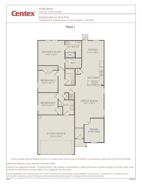 READY NOW! The Independence is a 3-bedroom, one story home with a Study by Centex. The Study is in the front of the home with a large window overlooking the front yard and beautiful glass French Doors. The family room is the perfect size and open to the kitchen / dining area. The Island kitchen features granite counter tops, Grey 42" cabinets with Satin Nickle hardware, a deep undermount stainless steel sink and upgraded Whirlpool Stainless Steel appliances including a gas range. Owner's Suite has a large walk-in closet, dual vanities, oversized walk in shower with ceramic tile surrounds. This home has luxury vinyl flooring throughout, carpet in the bedrooms only. Also includes tankless gas water heater, blinds, a fully sodded yard complete with a sprinkler system and four sides gutters.