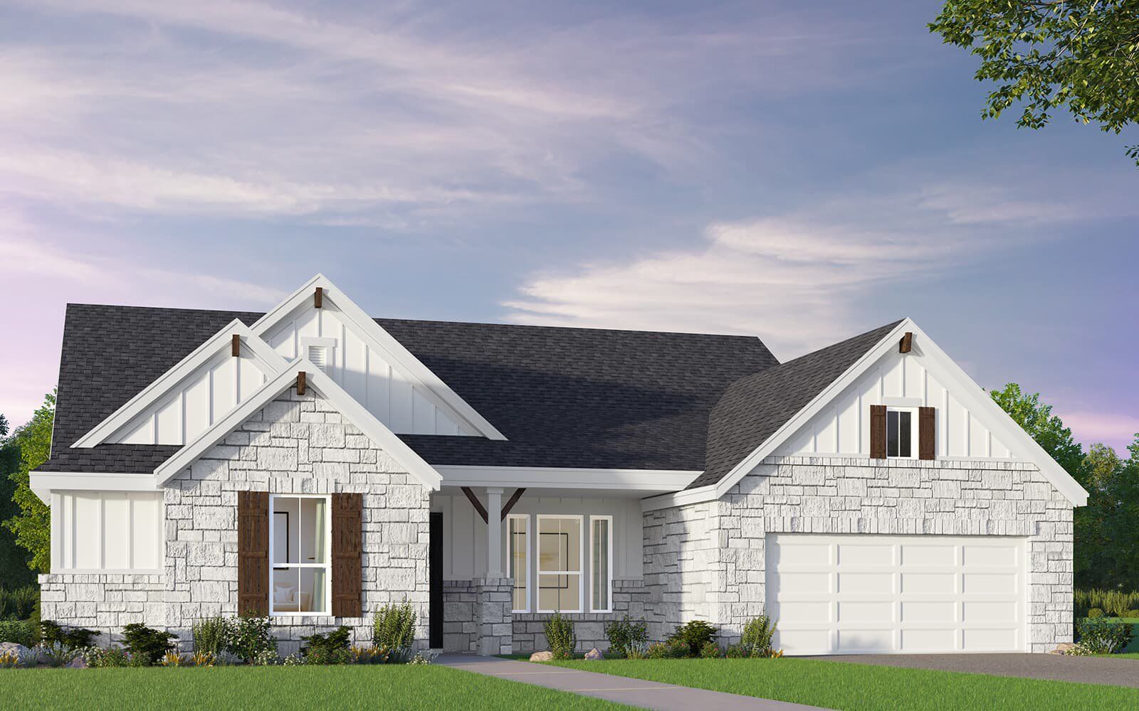 Come home to the Estes! This three bedroom + study, 2 1/2 bath home is for the family that plans to entertain in style. Storage abounds in the Estes – from the generous walk-in closets in every bedroom to the butler's pantry, this Cottage has a place for everything. There's even a pantry next to the butler's pantry! A mud room just off the garage makes the perfect place to store shoes, sports equipment, and fun stuff you'll need for life here at Kissing Tree. Don't miss the closet inside the mud room. The Primary bedroom has not one but two walk-in closets. The Primary bedroom, living room, and dining room wrap around the large covered patio – the perfect spot to enjoy the views and your morning coffee.