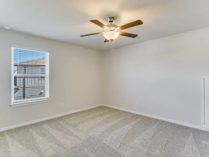Skip the theater and enjoy movie night at home from the comfort of the second-story game room. Slate cabinets with marble-look white quartz countertops, cool brown laminate flooring, and multi-tone taupe carpet in our Finesse package.