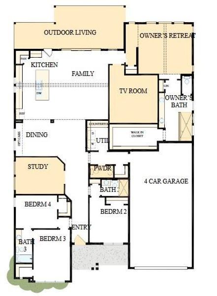 Your open-concept family room will be the heart of the home with a stunning cathedral ceiling that expands out to the large outdoor living patio. Natural sunlight is provided by the 12' sliding glass door and an abundnace of windows in your personal sunroom. The gourmet chefs kitchen provides a streamlined and stylish culinary workshop with a stunning butlers pantry. The Owners Retreat features a tall vaulted ceiling with a luxurious bathroom and walk-in closet. Each of the 3 spare bedrooms has been designed to optimize privacy and individual appeal.