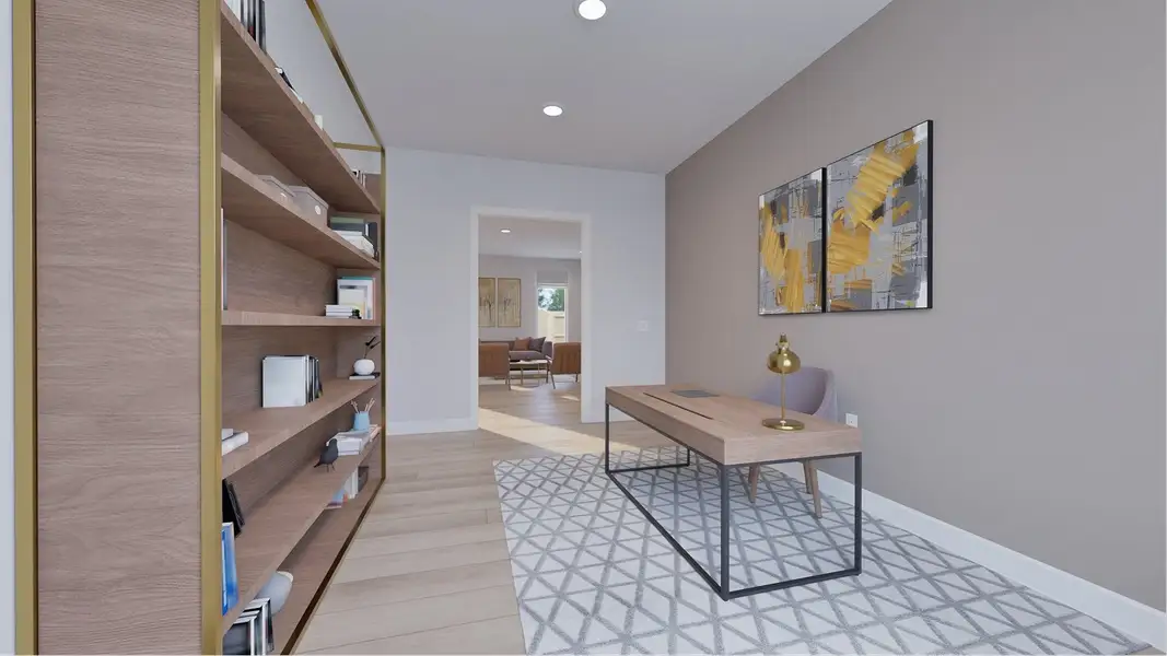 This single-story home shares an open layout between the kitchen, dining area and family room for easy entertaining, along with access to an outdoor space. A luxe owner's suite is in the rear of the home and comes complete with an en-suite bathroom and two closets. There are two secondary bedrooms at the front of the home, ideal for overnight guests or residents needing additional privacy, as well as a study to work from home.