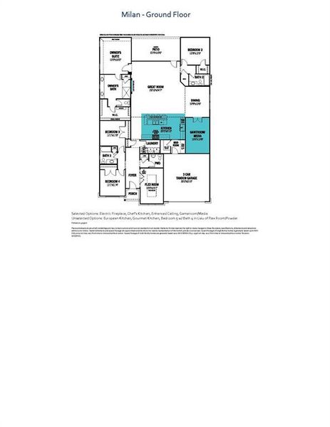 Built by Mattamy Homes - The Milan - Available March! The Milan by Mattamy Homes offers spacious single story living with a bright, open layout designed for everyday comfort. A welcoming foyer leads into a connected kitchen, dining area, and Great Room, creating an inviting space for gathering and daily living. Enhanced ceilings add volume and openness to the main living areas, while the Great Room features an electric fireplace that brings warmth and character to the heart of the home. The chef’s kitchen anchors the space with a large island, walk in pantry, and ample counter space, flowing seamlessly to the patio for easy indoor outdoor living. The private owner’s suite is thoughtfully positioned and includes a spa inspired bathroom and two walk in closets. Three additional bedrooms are located near full bathrooms, offering comfort and convenience for family or guests. A flex room near the foyer provides space for a home office or quiet retreat. For those family nights, relax in the media room and enjoy your favorite movie. This is a rare find, large footprint single story home sitting on just under one quarter acre lot. The Milan delivers the space, comfort, and features today’s homeowners are looking for—all on one level.