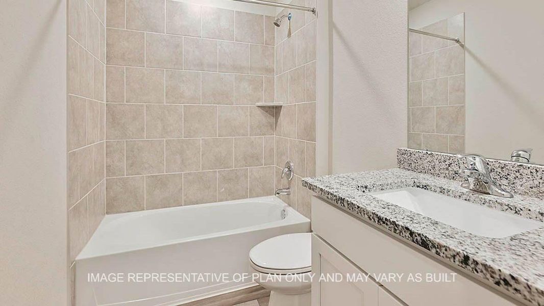 You’ll also find three cozy carpeted secondary bedrooms with easy access to the secondary bathroom. The laundry room is also centrally located for convenience. Retreat to the luxurious primary bedroom, where you’ll find the attached primary bathroom with its double vanity and walk-in closet.