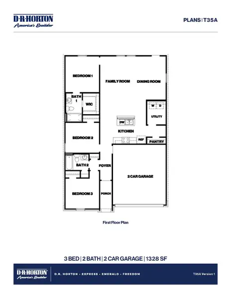 The Anderson floor plan offers a thoughtfully designed 3-bedroom, 2-bath layout with 1,328 square feet of comfortable living space. This single-story home emphasizes open-concept living, featuring a bright and spacious main area that seamlessly connects the kitchen, dining, and family room- perfect for entertaining or family gatherings. The modern kitchen includes ample counter space and cabinetry, creating an inviting atmosphere for cooking and conversation.