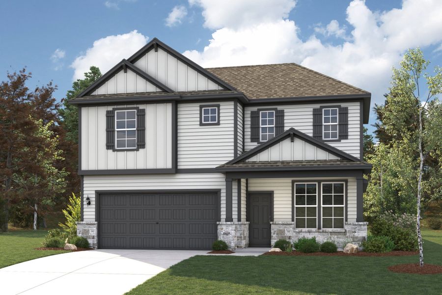 Welcome to the Norman! An impressive kitchen sits at the heart of the home, featuring a center island and spacious pantry. Adjacent to the kitchen is the dining room and great room, with abundant natural lighting. The main level also features a secluded study and powder room, but the star of the show is the primary suite, with a glorious walk-in closet and private bath. The second floor features two additional bedrooms, a roomy, relaxing loft, and a shared bath to complete this stylish, inviting home.
