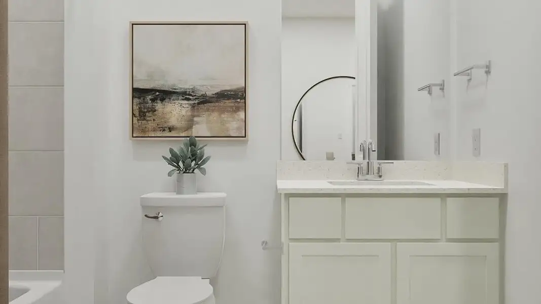 This new single-story home is perfect for gracious living. Two secondary bedrooms share a bathroom in the hall at the front of the home, while a third is around the corner with a private bathroom. Down the hall is a private study and an open living area, which includes a kitchen, dining area and a welcoming family room with a covered patio. The owner’s suite is tucked into the rear corner with an attached bathroom.