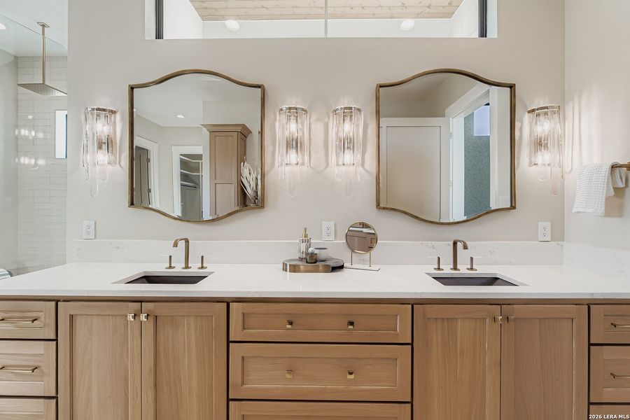 Welcome to this remarkable residence, a custom-built sanctuary that exemplifies McNair Custom Homes' uncompromising approach to residential design. Renowned home designer Gustavo Arrendondo's vision translates into 4,896 square feet of sophisticated living, where every element - from the suspended ceilings to hand-troweled wall finishes - reveals a deliberate attention to craft. The result is a home that reads as a unified expression of intentional design rather than a collection of high-end amenities. The entry announces the residence's character through substantial double doors of iron and glass, drawing natural light deep into the home while establishing a threshold that immediately conveys distinction. A decorative floor treatment grounds this arrival experience, preparing guests for the refined spaces beyond. From here, the home branches naturally into distinct zones - each thoughtfully proportioned and connected through flowing sightlines that prevent the generous square footage from ever feeling oversized. Your bound to see designer touches everywhere as you make your way through the home, as Karen Dietz Interiors created a delight for the senses and a welcoming vibe second to none. The kitchen became the proving ground for the home's quality philosophy. Thermador gas cooking, quartz countertops, and glass-fronted cabinetry sit alongside a pot filler and an island substantial enough to accommodate both cooking and gathering. This isn't kitchen theater; it's an ingredient in a working home, one where serious cooking is supported by serious infrastructure. Natural light floods the adjacent dining room, a space generous enough for both everyday meals and entertaining, underscoring the home's flexibility between intimate moments and larger social occasions. The primary bedroom deserves its own consideration. Clerestory windows ensure abundant daylight without sacrificing privacy - a nuance that elevates the space beyond standard primary suite conventions. The ensuite bathroom furthers this elevation through a freestanding tub positioned to capture natural light and a walk-in shower outfitted with multiple shower heads including a rain fixture, creating the kind of daily ritual experience that transforms the routine into restoration. Beyond the primary spaces, a secondary living area with wetbar, wine and beverage refrigeration, ice machine, and both cabinetry and open shelving reveals a home designed for genuine hospitality. This zone, separate from the kitchen yet functionally connected, allows gatherings to flow naturally while keeping the primary living spaces separate from entertainment areas. The outdoor experience is not forgotten in this home and receives equivalent sophistication. A large covered patio overlooking an inground pool and raised spa becomes an extension of the home's living footprint rather than an afterthought. Keith Zars Pools executed the pool and spa with the same caliber of detail evident indoors, creating the kind of cohesive outdoor environment that invites regular use. A complete outdoor kitchen anchors the patio, ensuring that entertaining transitions seamlessly from interior to exterior spaces. Guests will feel like they're attending a gala event as they pull up to the home and you'll feel the stress of the day slipping away as you pull into the circular driveway inlaid with brick pavers - all that's missing are the paparazzi. An oversized three-car garage provides ample space for your vehicles and storage needs, while extensive landscaping integrates the home thoughtfully within its setting rather than simply occupying the land. The cast stone fireplace and vent hood serve as visual anchors, their architectural presence justifying their prominence without appearing gratuitous. This home functions as a comprehensive statement about what residential design achieves when every decision receives genuine consideration.