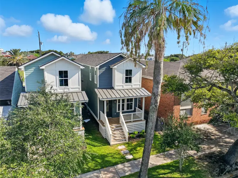 Rencently built with high end designs, you will be impressed when you walk this home. Ideally located just 3 blocks from UTMB and 3 blocks from the beach. Step in to find a beautiful kitchen with custom cabinets, upgraded light fixtures, a walk-in pantry, and a coffee bar. A hallway half bath with natural stone sink, wood paneling and designes light fixtures. Primary bedroom on the first floor with en-suite and access to the back porch and backyard. Upstairs, you'll find 2 bedrooms and a hallway bathroom. Each bedroom has an oversized closet. Ideal for a full time residnece or rental investment. 2 car-parking pad with access from the alley, additional street parking in front of the house. The ideal LOCATION and an almost-new home are waiting for you in galveston.