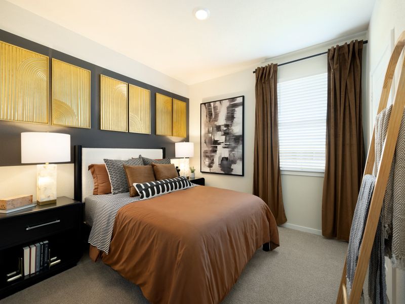 The Cascade's private primary suite boasts dual sinks and a large walk-in closet for ample storage.White cabinets with light quartz countertops and white backsplash, light brown EVP flooring and multi-tone carpet.