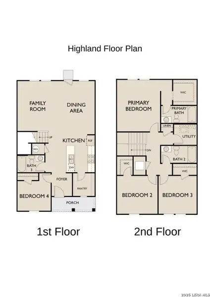 Discover the comfort and versatility of the Highland floor plan, a thoughtfully designed two-story home offering 4 spacious bedrooms, 3 bathrooms, and 1,799 square feet of well-planned living space. This inviting layout welcomes you through a covered front porch into a warm foyer, where the home opens into a bright and functional living area designed for both everyday living and entertaining. The open-concept main level seamlessly connects the family room, dining area, and kitchen, creating a welcoming atmosphere for gatherings and daily routines. The kitchen offers ample counter space, modern appliances, and convenient flow into the dining and living areas, making it perfect for hosting or relaxing at home. A standout feature of this home is the fourth bedroom located on the main level, paired with a full bathroom-ideal for guests, multi-generational living, or a private home office. Upstairs, the primary suite provides a peaceful retreat with a private en-suite bathroom and a spacious walk-in closet. Two additional bedrooms are also located on the second floor, each featuring walk-in closets for generous storage and sharing a full bathroom nearby. The utility room is conveniently located upstairs, making laundry day easy and accessible from the main bedroom areas. With its flexible floor plan, upstairs utility room, and spacious bedrooms with walk-in closets, the Highland offers a smart blend of comfort, functionality, and style-perfect for modern living.