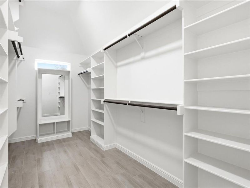 The private primary suite offers a spa-inspired retreat with a freestanding soaking tub, oversized walk-in shower, dual vanities, and a large walk-in closet with built-in shelving. Secondary bedrooms are generously sized and thoughtfully arranged in a split-bedroom layout for added privacy for family or guests.