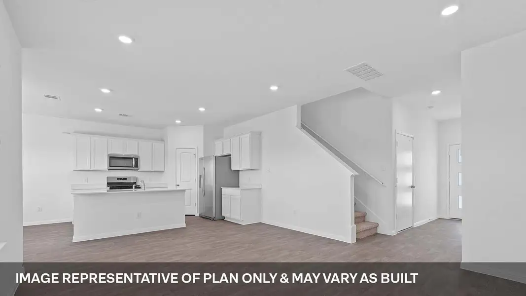 Walk into the long foyer straight into the large family room overlooking the spacious kitchen and dining nook. The kitchen features quartz or Silestone® countertops, stainless steel appliances, recessed lighting, and a kitchen island. Upstairs you will find the secondary bedrooms, laundry room and the main bedroom, bedroom 1. The main bedroom features a large walk in shower and huge walk in closet.
