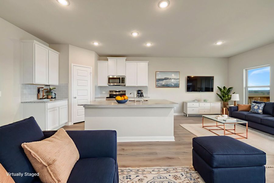 You will love calling the Magellan “home” with its inviting curb appeal. Upon entering this home through the covered porch, you will be in awe of the grand foyer. Find a spacious flex room and powder bath immediately off the entry, which could be converted into an optional bedroom and full bath. Move from the foyer into the open living space boasting the kitchen, dining area, and huge family room. You can even select an optional extension to the dining room for extra space. Enjoy impressive included features, such as an oversized kitchen island, granite countertops, and upper and lower cabinets. Want to enjoy a Texas sunset right outside of your back door? We’ve got you covered! An optional covered patio is the perfect place to spend a peaceful evening.