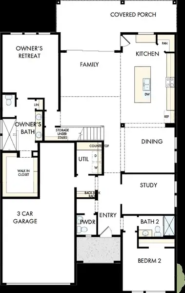 - Primary Bedroom On MainKitchenRetreat AreaPowder RoomOffice/StudyDining RoomFamily RoomOpen Concept FloorplanPrimary Bedroom Downstairs