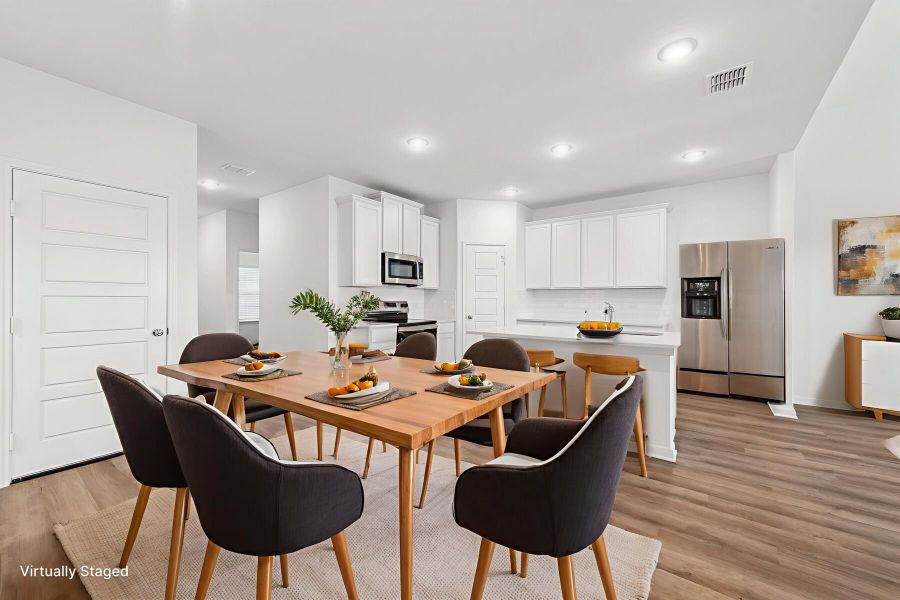 Upon entering this home, you will notice the flex room or optional guest bedroom and full bath tucked conveniently off the entry. Continue into the open common areas, including the spacious and bright family room, designated dining room, and kitchen. The kitchen offers a large center island with the option to upgrade to an alternate island layout. The large family room at the rear of the home offers tall, sloped ceilings, large windows allowing for plenty of natural light, and easy access to an outdoor patio with option to upgrade to a covered patio – perfect for entertaining.