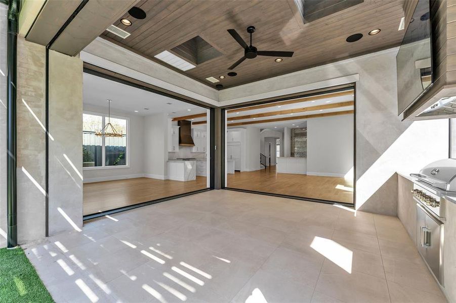 Located in the exclusive gated and guarded community of The Lawn at Glen Abbey - 35 Elk Stone Drive is a home designed to move you. Built by renowned luxury builder Bob Thompson, this forward-thinking residence represents the pinnacle of sophisticated living. An impressive entry sets the tone, leading to a beautifully executed kitchen that truly lacks nothing. Outfitted with Wolf & Sub-Zero appliances, a large serving island, and an exceptional walk-in pantry scullery that will impress even the most discerning cook. Entertaining comes naturally in the light-filled great room where expansive windows and a well-appointed wet bar create the perfect gathering place. The stunning veranda invites year-round enjoyment with Western Sliders on two sides, automatic screens, and a built-in outdoor kitchen that seamlessly blends indoor and outdoor living. A gallery hallway leads to the private owner’s retreat featuring a wet coffee bar, serene outdoor views, a spa inspired bath, and an oversized custom closet that conveniently connects to the utility room. A private study with adjacent workroom completes the first level. Upstairs, accessible by elevator or stairs, are two generous guest suites, a living area, and a versatile exercise flex room, along with a Texas-sized storage room - rarely found in homes today. Smart home. Thoughtfully constructed with foam encapsulation and 5-inch white oak flooring, this exceptional home is tucked away at the rear of the subdivision on a quiet cul-de-sac street, offering both privacy and prestige. 35 Elk Stone Dr. is truly the Gold Standard of living.