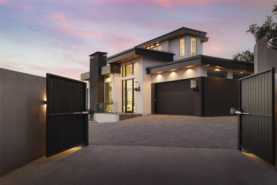 A secure, gated, and privately walled arrival sets the tone for the residence. Spanning approximately 11,000 square feet on nearly an acre, the home was built by Paradisa Homes with an uncompromising focus on proportion, durability, and enduring quality. Walls of glass frame the living environment throughout, including a custom Fleetwood Edge sliding system—the largest of its kind—opening to uninterrupted city and Hill Country views.