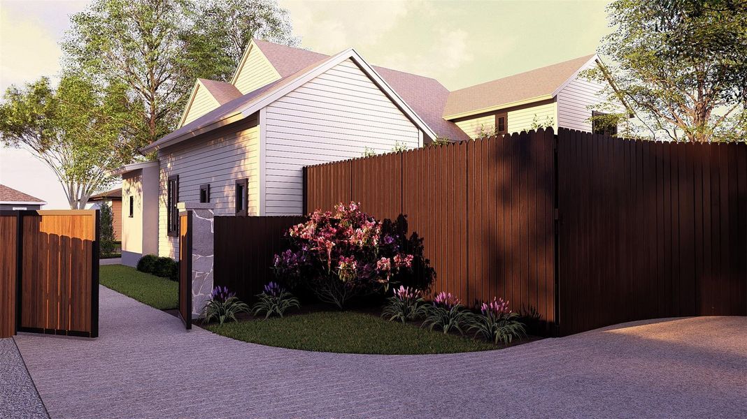 Three graceful arches define the front elevation, creating a sense of architectural procession rarely seen in Central Austin new construction. Beyond a stone wall and motorized entry gate, the home unfolds in true privacy — a setting more reminiscent of estate living than an in-town Hyde Park address. Privacy is luxury, and here it is built into the design.