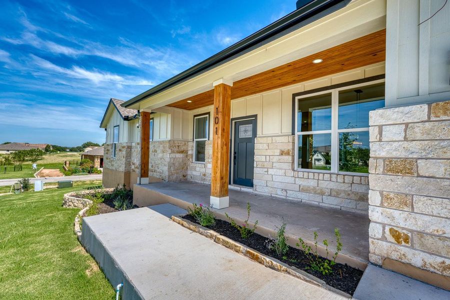 Welcome to 101 Olympia Hills Court, a beautiful new construction home located in the desirable Lighthouse Country Club neighborhood of Kingsland, TX. SELLER CONCESSIONS ARE BEING OFFERED! Situated on a beautiful lot with gorgeous views of Packsaddle Mountain, this thoughtfully designed 3-bedroom, 2-bathroom home also features a dedicated office—ideal for remote work, a hobby room, or playroom. Step inside to an airy, open-concept layout with stylish, low-maintenance vinyl plank flooring throughout. Spacious living and dining areas flow seamlessly into a well-appointed kitchen complete with sleek granite countertops and ample cabinet space. This home includes many updated features throughout. The yard is professionally landscaped with a sprinkler system. Conveniently located at the Lighthouse Golf Course, you are also minutes away from Lake LBJ, restaurants, and all the amenities Kingsland has to offer, this home combines modern living with small-town charm.