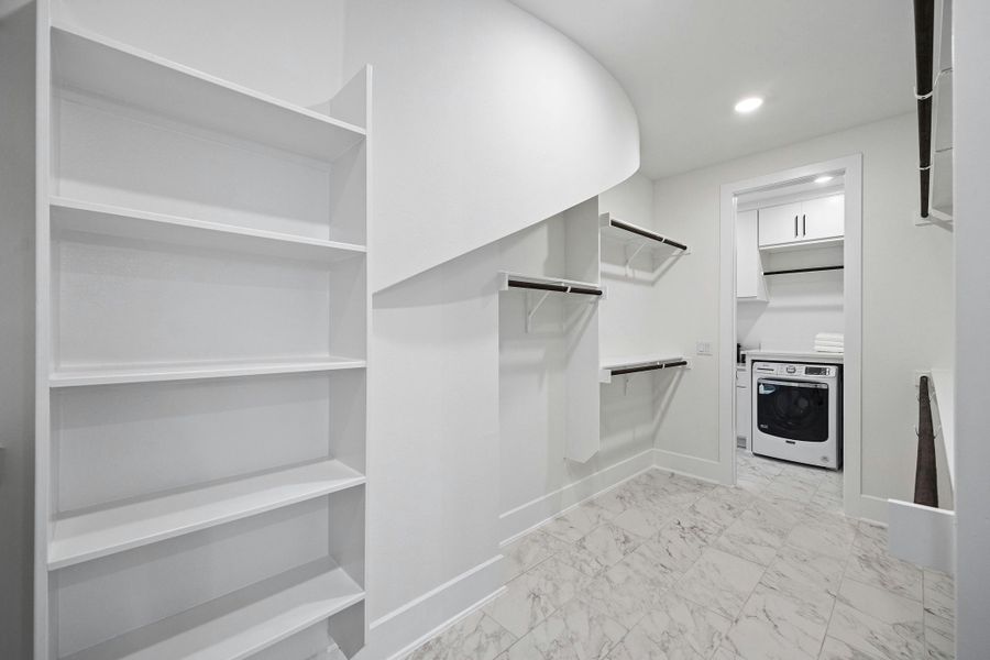 The first floor includes two bedrooms, an informal dining area adjacent to a modern kitchen, and a soaring two-story family room. A downstairs study provides a quiet space for work or reading. The luxurious primary suite boasts two expansive walk-in closets.