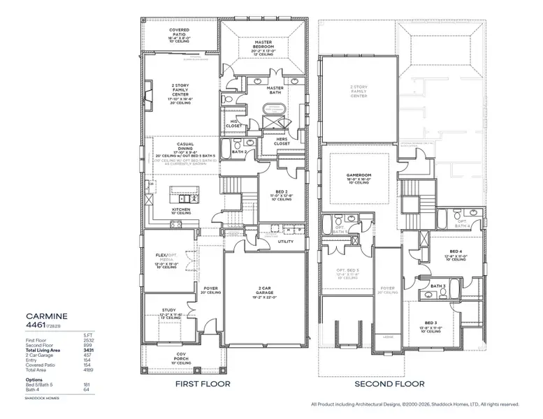 This northeast facing Carmine model offers an impressive 20 foot foyer that leads into an open layout with a two story family room and fireplace. The chef’s kitchen integrates seamlessly with the living and dining areas, creating an ideal space for entertaining. A first floor media room provides a dedicated setting for movie nights, while the upstairs game room overlooks the main living area. Interior upgrades include nail down red oak wood flooring in key areas, 8 foot doors on the first level, designer lighting, and quartz kitchen countertops. The exterior features warm cream painted brick. Additional enhancements include upgraded technology and lighting packages. Located in a community with no MUD or PID taxes, this home blends country living with convenient city amenities.