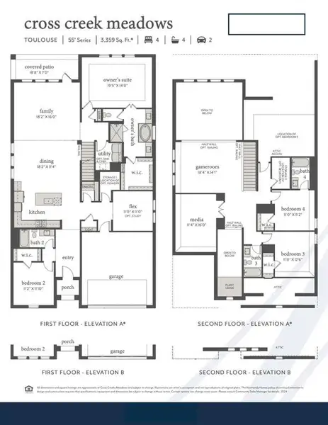 NORMANDY HOMES TOULOUSE floor plan. This beautiful west-facing Toulouse A plan offers 4 spacious bedrooms, including two conveniently located downstairs, and 4.5 baths designed for comfort and privacy. A grand entrance welcomes you with soaring ceilings that continue into the stunning family room filled with natural sunlight. The home also features a private study, media room, and game room for work and play. Its modern exterior adds great curb appeal, while the generous backyard provides plenty of space for entertaining and relaxing outdoors.