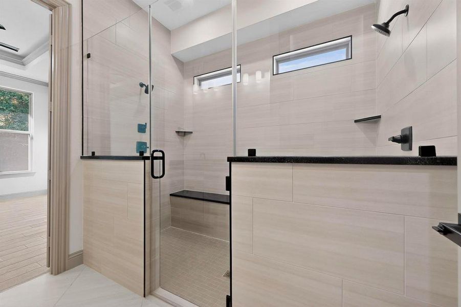 The open-concept layout showcases a spacious island kitchen, walk-in pantry, and upgraded finishes, including added stone accents that elevate the home’s curb appeal. The primary suite offers an oversized shower upgrade, creating a spa-like retreat.