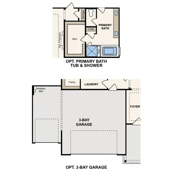 Soaking tub and walk-in shower in primary bath