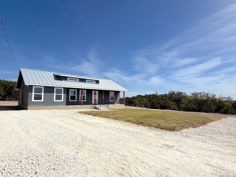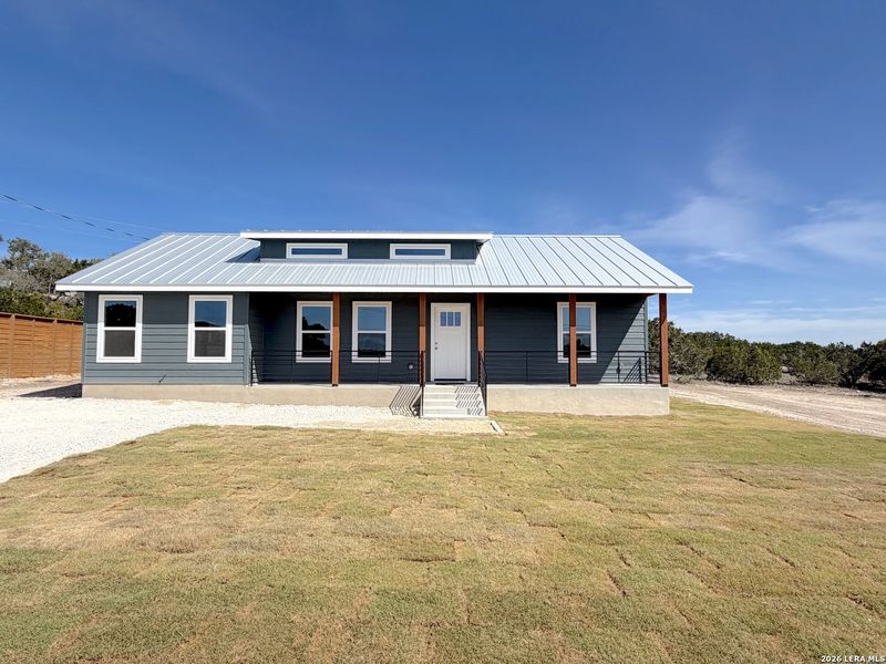 This stunning new construction home sits on a spacious 1/4-acre lot, with the opportunity to purchase the adjacent lot for a full 1/2 acre. Enjoy picturesque views from the inviting covered front porch, setting the tone for this beautifully designed property that blends timeless charm with modern comfort. Inside, you'll find a bright, open-concept layout with soaring ceilings and durable laminate flooring that flows seamlessly throughout. The kitchen is truly the heart of the home, featuring a large center island, granite countertops, custom wood cabinetry with soft-close doors, a built-in pull-out trash system, and stainless steel appliances, including the refrigerator. The primary suite offers a peaceful retreat, complete with an en-suite bathroom showcasing a custom-tiled walk-in shower with a sleek glass door, a wood vanity topped with elegant marble, and high-end finishes throughout. Built with quality and efficiency in mind, this home includes a standing seam metal roof, 3.5" spray foam insulation on exterior walls, and a fully decked, conditioned attic, perfect for additional storage. A tankless water heater and smart thermostat add to the home's energy-efficient features. Outside, the front yard features lush Bermuda grass and an oversized driveway, while the backyard offers a level layout and a covered porch, ideal for relaxing or entertaining. With no HOA, you'll enjoy added freedom and flexibility. Conveniently located just minutes from shopping, dining, and everyday essentials, this property offers the perfect balance of peaceful living and modern convenience.