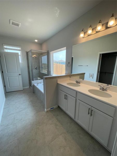 Enter this stunning home with soaring 23-foot ceilings extending through the living room, flooded with natural light from expansive windows. Relax on the back patio overlooking a spacious backyard. The kitchen boasts stainless steel appliances, 42-inch white cabinets, gray quartz countertops, and a classic white subway tile backsplash. Durable RevWood flooring flows through the entry, kitchen, and living room. Elegant metal stair railings lead to the second floor with an open overlook and a generous game room. The primary suite offers a garden tub/shower combo and double vanity sinks. Enjoy a 2-acre amenity park and over 70 acres of community park space.