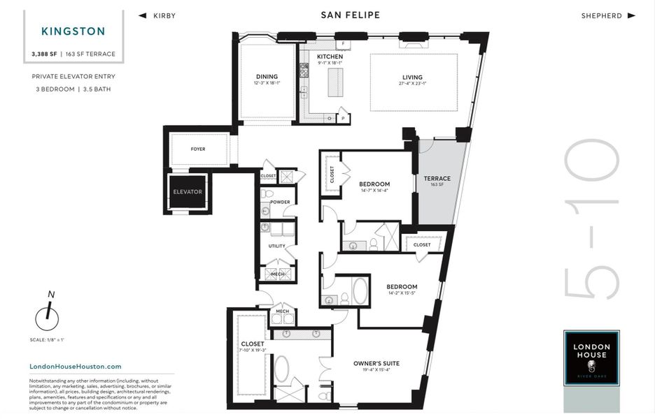 Never been lived in ~ a new chapter in residential sophistication is transforming the boutique mid-rise london house which is immediately recognized by its distinctive River Oaks location. This boutique mid-rise offers 23 residences only 12 stories. Each residence celebrates the scale and beauty of a perfect balance of aesthetic and practical considerations with ceiling heights ranging from 11-13ft, kitchens featuring wood and lacquer cabinetry designed by eggersman, appliances by gaggenau and thermador and elegant primary bathrooms offering rain showers and a wide selection of natural materials and hardware to continue a sense of history in River Oaks. 2 - 1 car enclosed garages - outdoor summer kitchen